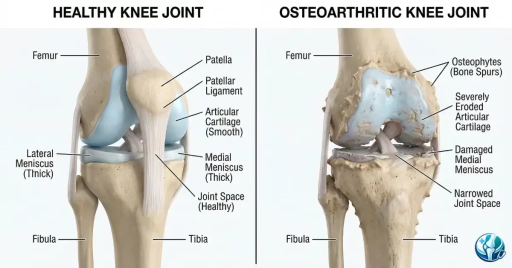 These daily micro-traumas compound over time. The cartilage thins out, the joint space narrows, and eventually, bone grinds directly against bone. That is when the severe, stabbing pain begins.